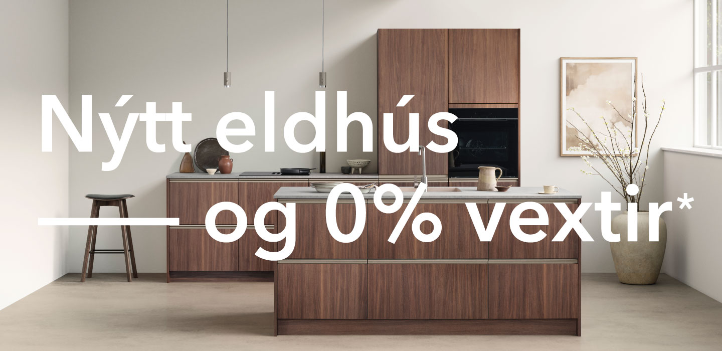 *Tilboðið gildir við kaup á eldhúsinnréttingu, baðinnréttingu eða fataskáp fyrir að lágmarki 250.000,- Greiðslum má skipta niður í að hámarki 12 greiðslur sem greiðist mánaðarlega. Vextir eru 0% og greiðast alfarið af KVIK. Lántökugjald 4%, 495 króna greiðslugjald og 350 kr seðilgjald greiðist af kaupanda. Raðgreiðslusamningur er gefinn út af Teya og er háð lánshæfismati frá Creditinfo. Hámarksupphæð láns getur numið 1.500.000,- 1.990.000,- Tilboðið gildir t.o.m. 28. febrúar og má ekki samnýta öðrum tilboðum.