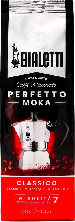 Intenso kaffið er síðan dökkristað og sérstaklega þróað til að ýta undir ilminn af ristuðu brauði og kakói. Intenso er það sem inniheldur mesta koffínið af Bialetti kaffitegundunum og er í dökkbláa pakkanum.
