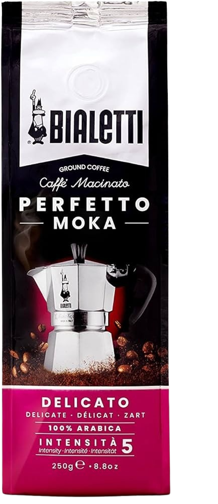 Intenso kaffið er síðan dökkristað og sérstaklega þróað til að ýta undir ilminn af ristuðu brauði og kakói. Intenso er það sem inniheldur mesta koffínið af Bialetti kaffitegundunum og er í dökkbláa pakkanum.