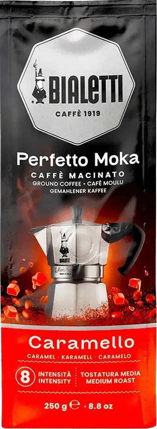 Intenso kaffið er síðan dökkristað og sérstaklega þróað til að ýta undir ilminn af ristuðu brauði og kakói. Intenso er það sem inniheldur mesta koffínið af Bialetti kaffitegundunum og er í dökkbláa pakkanum.