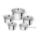 Glæsilegt pottasett frá Henckels úr smiðju Zwilling í Þýskalandi. Pottarnir eru úr ryðfríu stáli með heilsteyptum álkjarna sem tryggir hraða og jafna hitadreyfingu og hátt rispuþol. 18/10 hágæðastál.