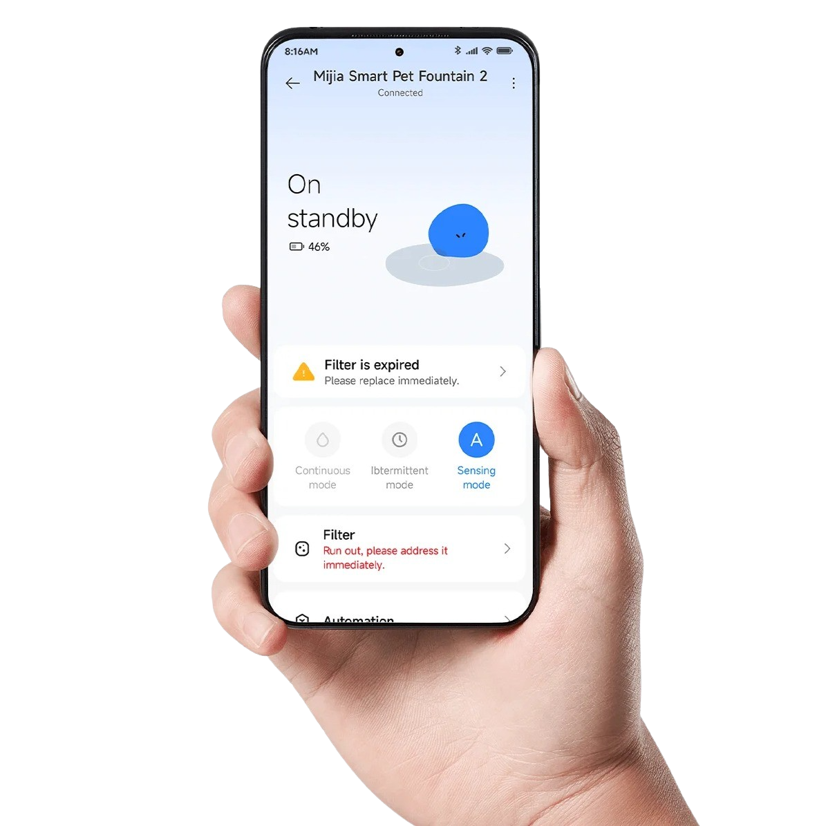 Með app-tengingu er hægt að sjá stöðuna á vatni, síu og hleðslu beint í símanum.