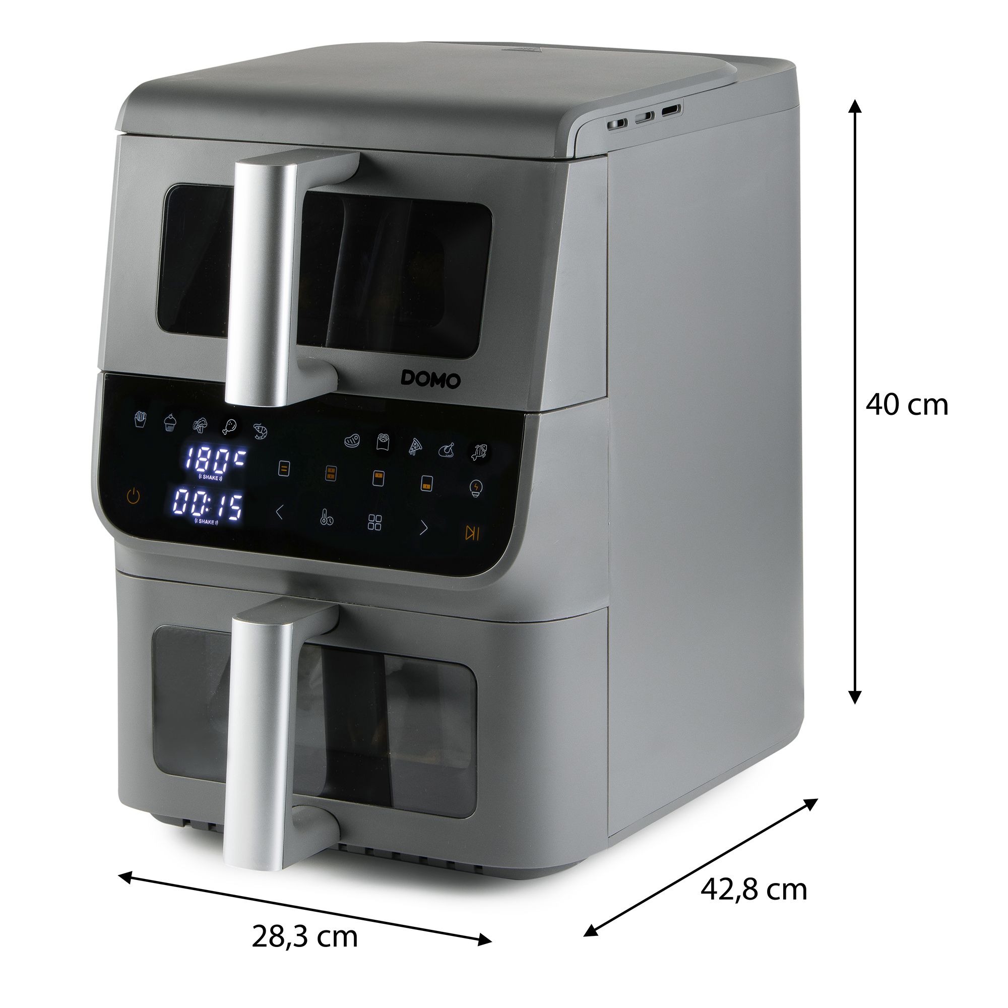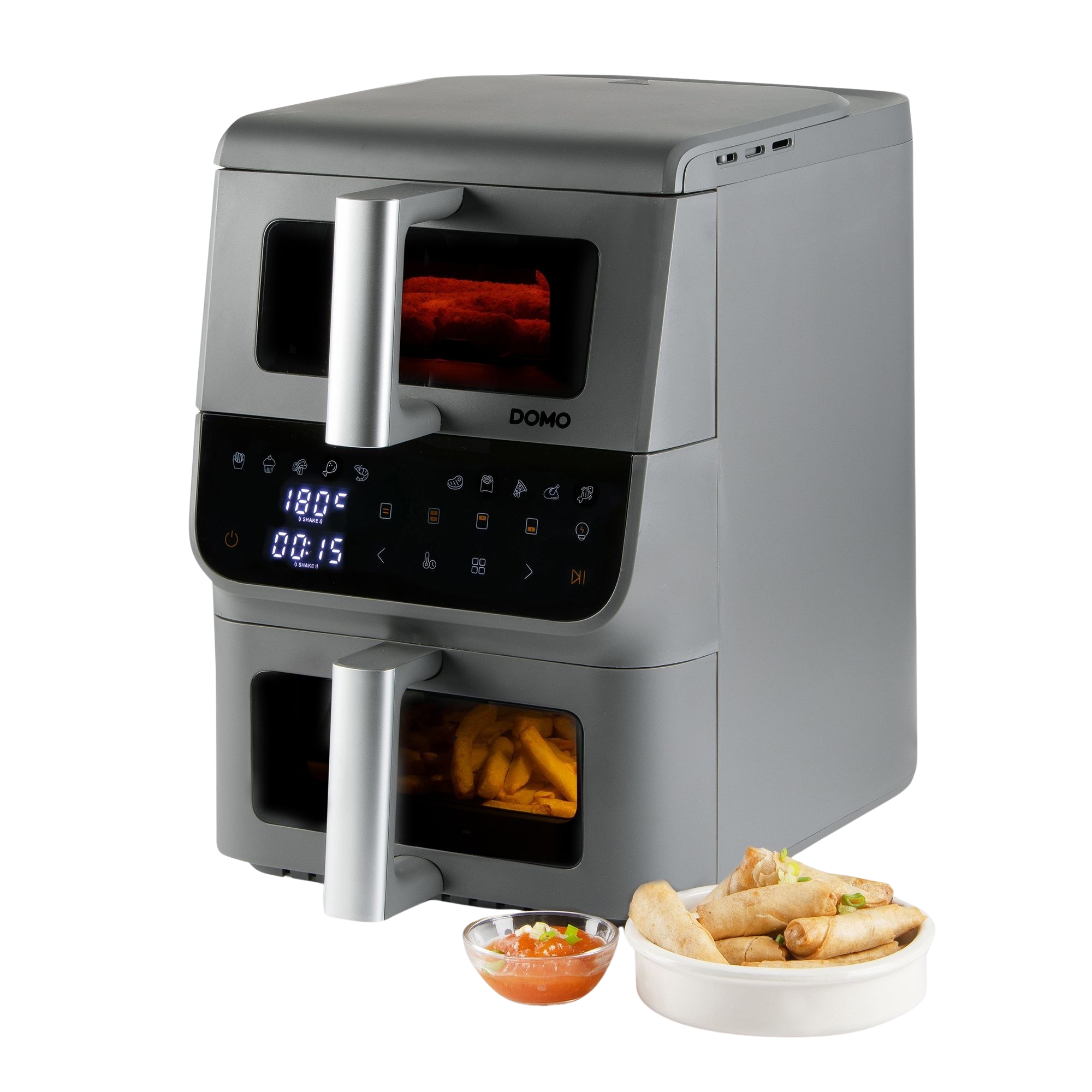 Domo DeliFryer er byltingarkennd nýjung í þitt eldhús. Hér getur þú t.a.m. eldað fullkomnar franskar sem eru stökkar og gullinbrúnar á öllum hliðum, allt að 1,2 kg með aðeins einni skeið af olíu svo að þær innihalda aðeins 3% fitu. Þetta er þó bara byrjunin, því í þessum heilsubrunni getur þú matreitt fjölda annarra girnilegra og heilsusamlegra rétta sem bæði innihalda kjöt, fisk eða grænmeti. Galdurinn felst í að innihaldinu er snúið reglulega á meðan heitt loft bakar og steikir, svo að maturinn fái fallega áferð og betra bragð. Prófaðu til dæmis kjúklinga Tikka Masala, grænmetis stir-fry eða Calamari frá miðjarðarhafinu.