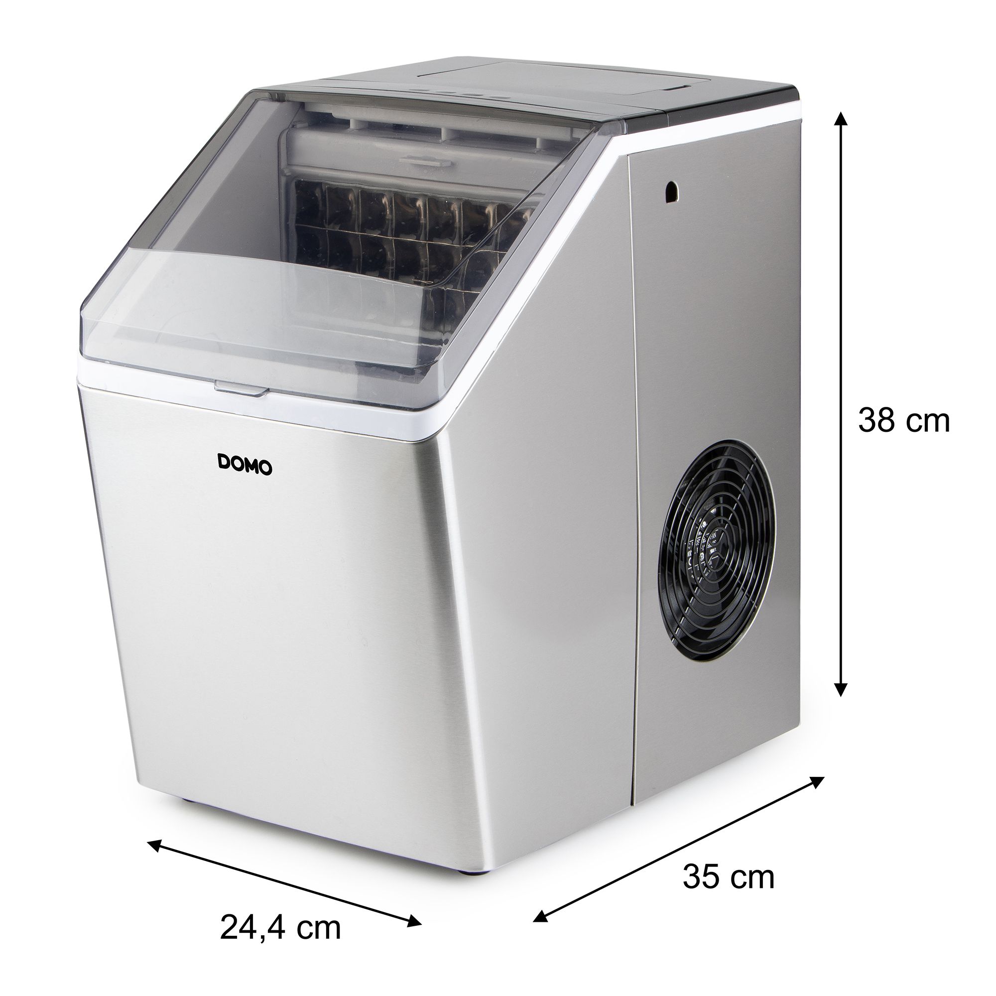 Með einföldu LED snertistjórnborði stýrir þú vélinni.Hægt er að velja um þrjár mismunandi stærðir af klökum.