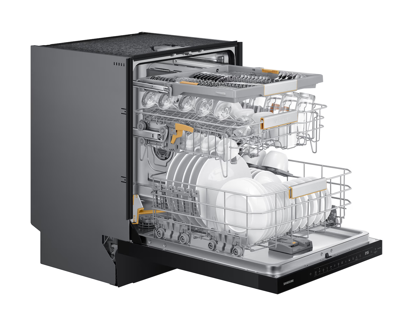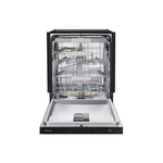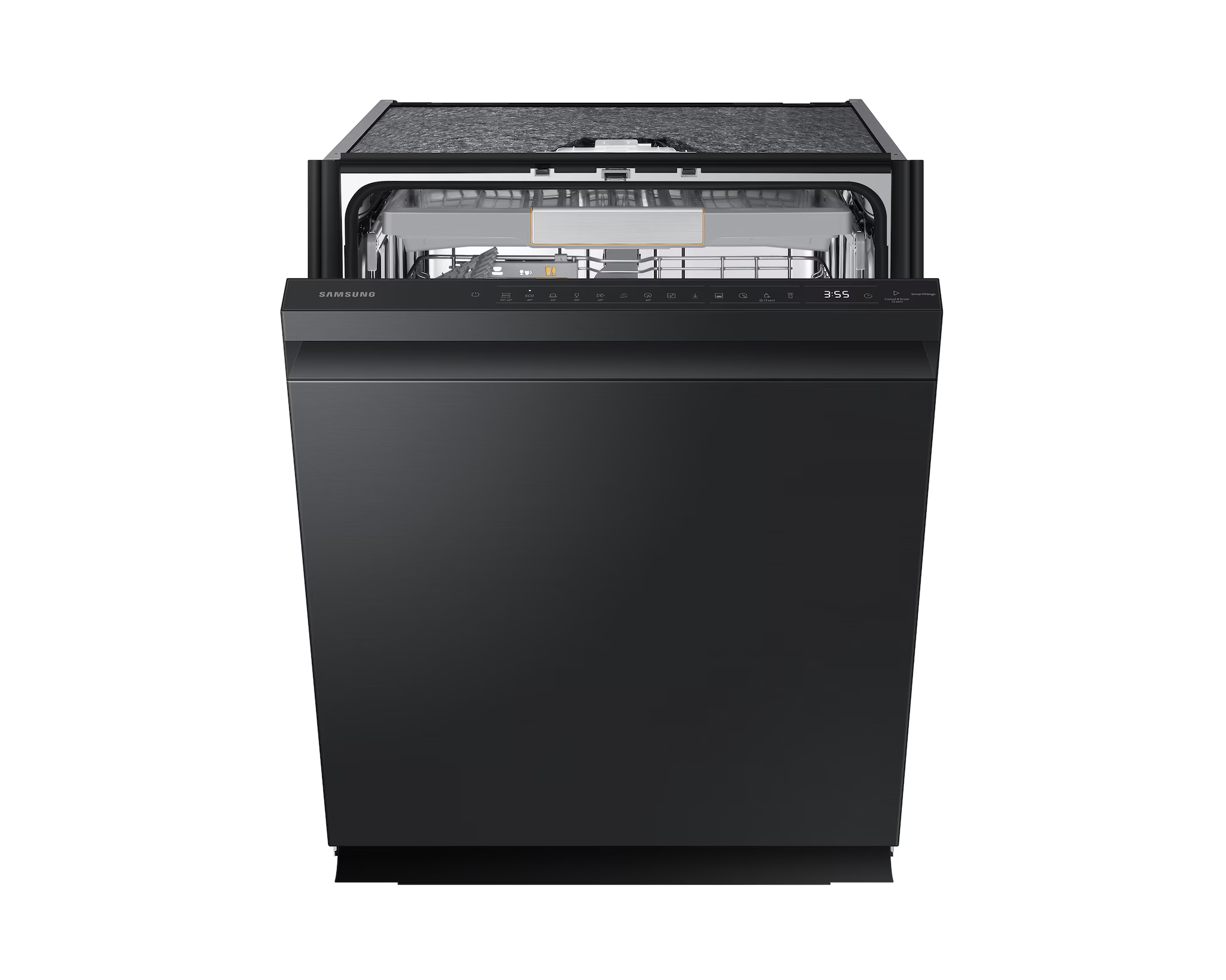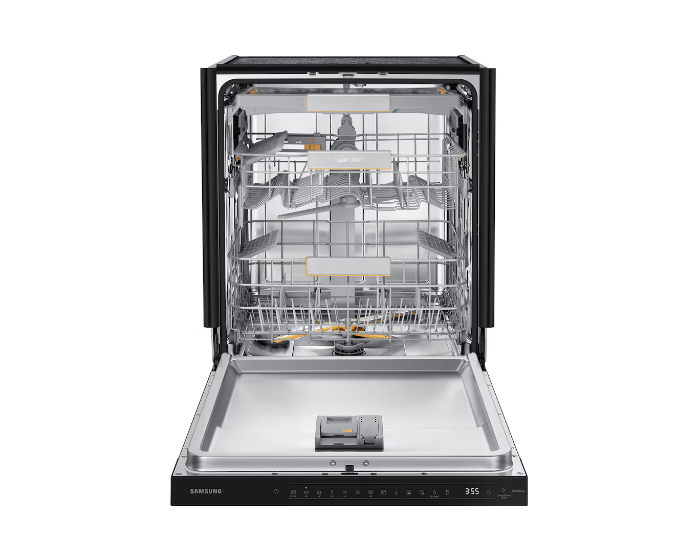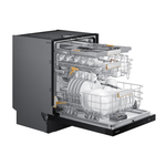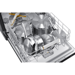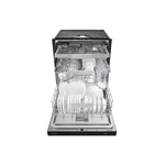 Samsung uppþvottavél í svörtu stáli. Hljóðlát, orkusparandi og opnar sig sjálf þegar þvotti er lokið með AutoOpen tækni.