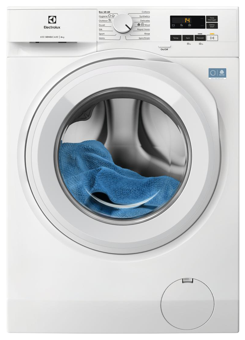 Electrolux SensiCare 600 þvottavél með hljóðlátum og endingargóðum kolalalausum mótor. Hentar meðalstórum og stórum fjölskyldum sem vilja vandaða þvottavél frá traustu merki.