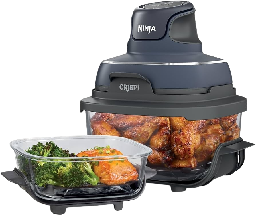 Ninja Crispi Air Fryer er einstaklega öflugur loftsteikingarpottur sem hentar vel bæði heima og í ferðalagið. Nú getur þú eldað, framreitt og geymt matinn í einu og sama ílátinu.