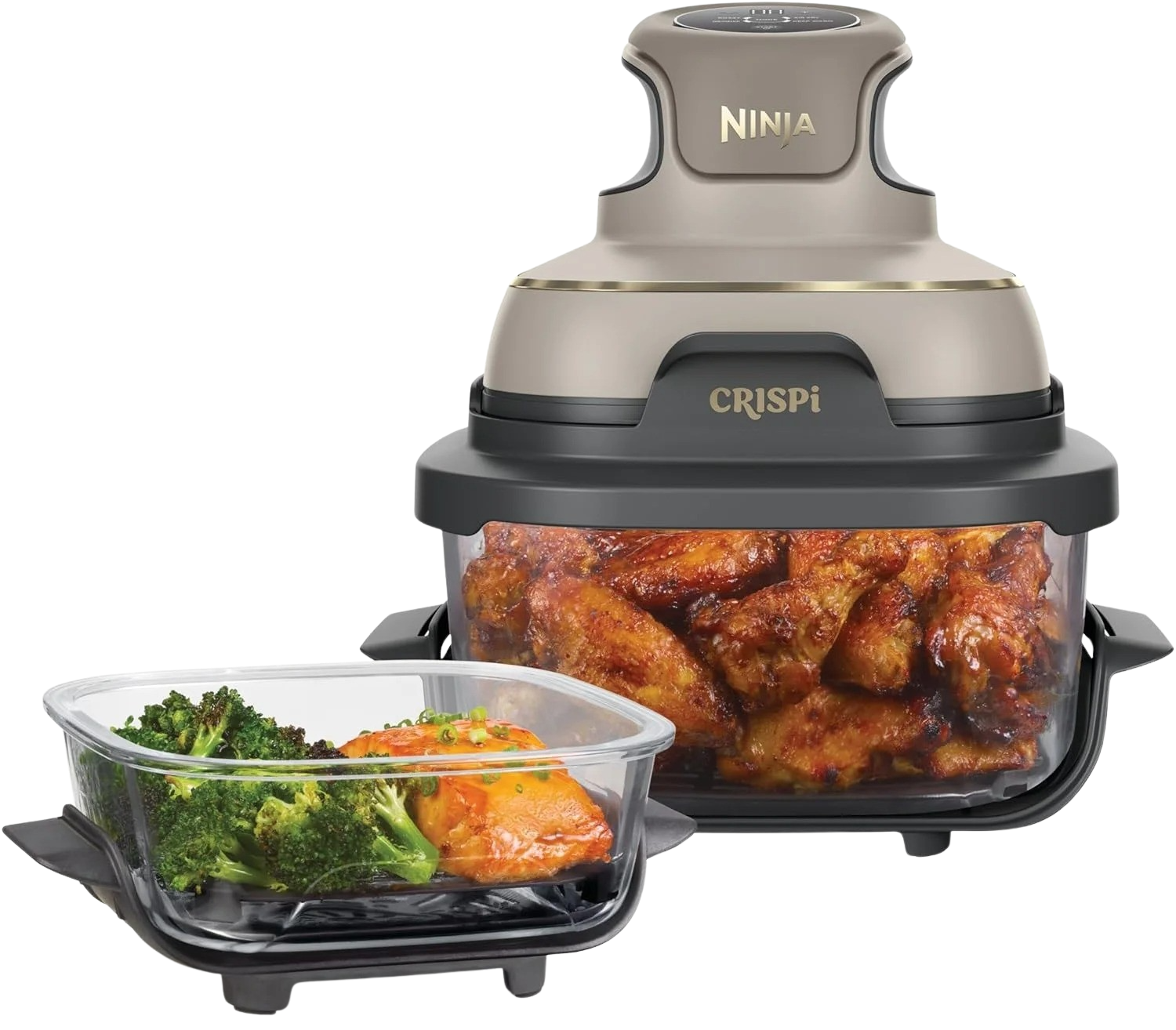 Ninja Crispi Air Fryer er einstaklega öflugur loftsteikingarpottur sem hentar vel bæði heima og í ferðalagið. Nú getur þú eldað, framreitt og geymt matinn í einu og sama ílátinu.