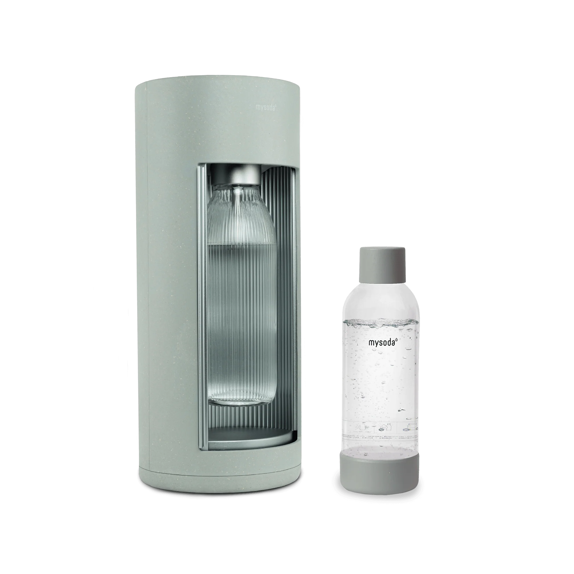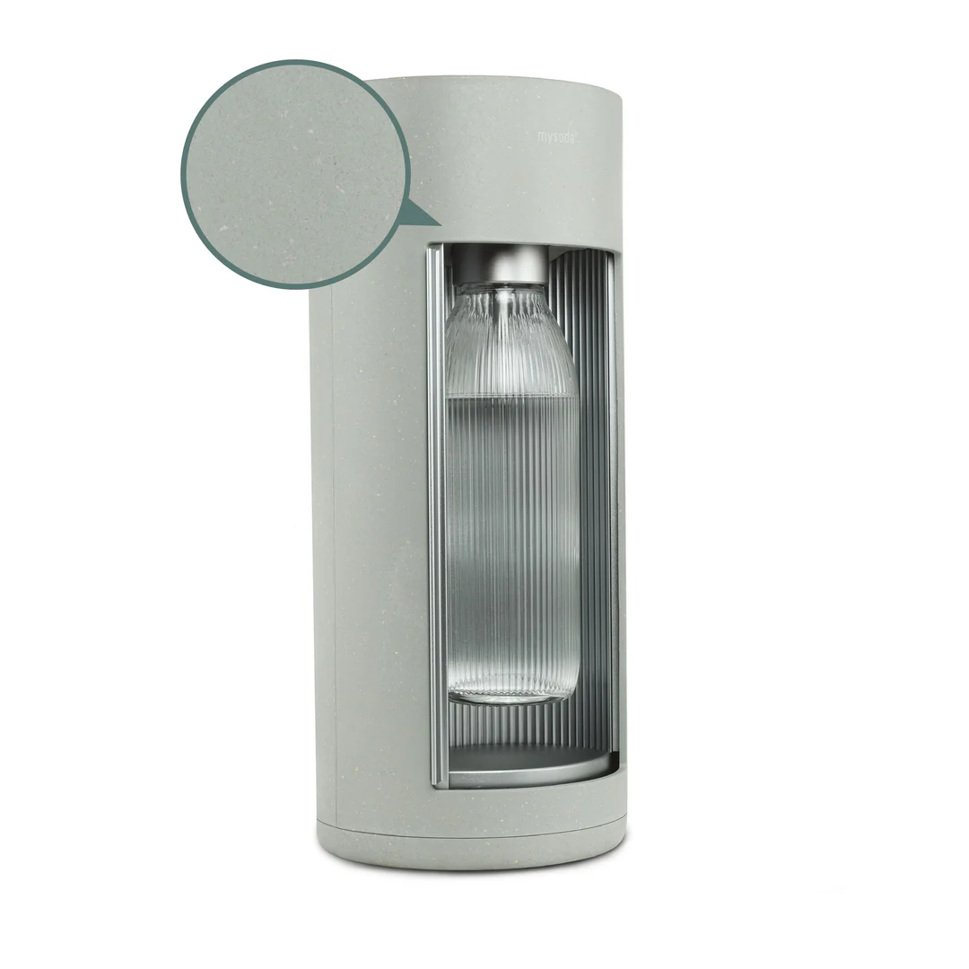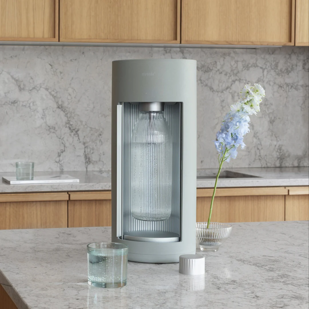 Glassy flöskurnar eru úr endurunnu gleri og festast með smellulæsingu. Glassy sameinar allt það besta úr The Ruby og Woody frá MySoda með sjálfbærri og skilvirkri hönnun. Einföld finnsk hönnun sem fellur að Norrænni fagurfræði.