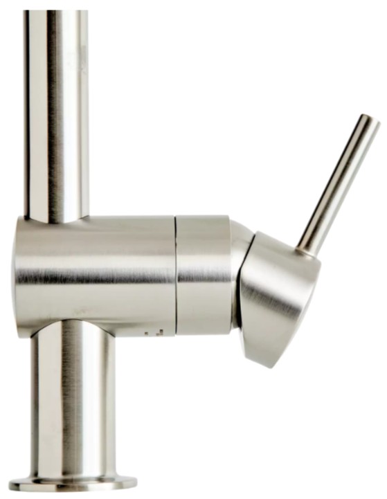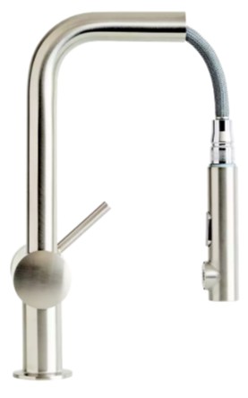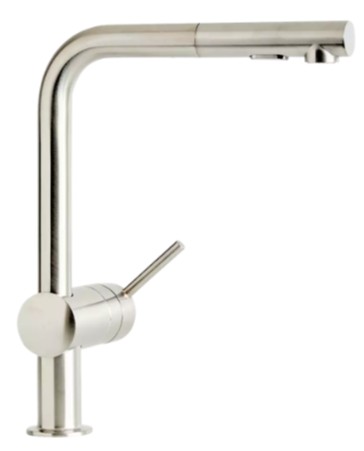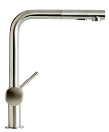 Þetta blöndunartæki er úr burstuðu stáli og er með útdraganlegum stút með tveimur úðastillingum, sem veita fjölbreytileika fyrir öll verkefni í eldhúsinu. Með 328 mm lengd býður það upp á góða stjórn, sem gerir það kjörið til að skola diska eða þrífa vaskinn. Tækið sameinar fágað útlit og hagnýta eiginleika og er verðmæt viðbót í hvaða nútímaeldhús sem er.