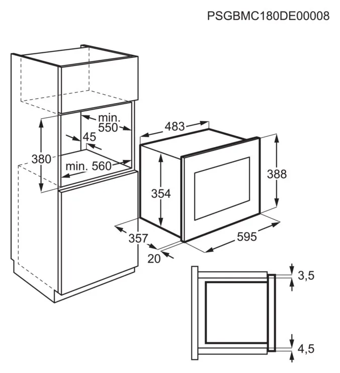 - Innbyggingarmál HxBxD - 38 x 56 x 55 cm