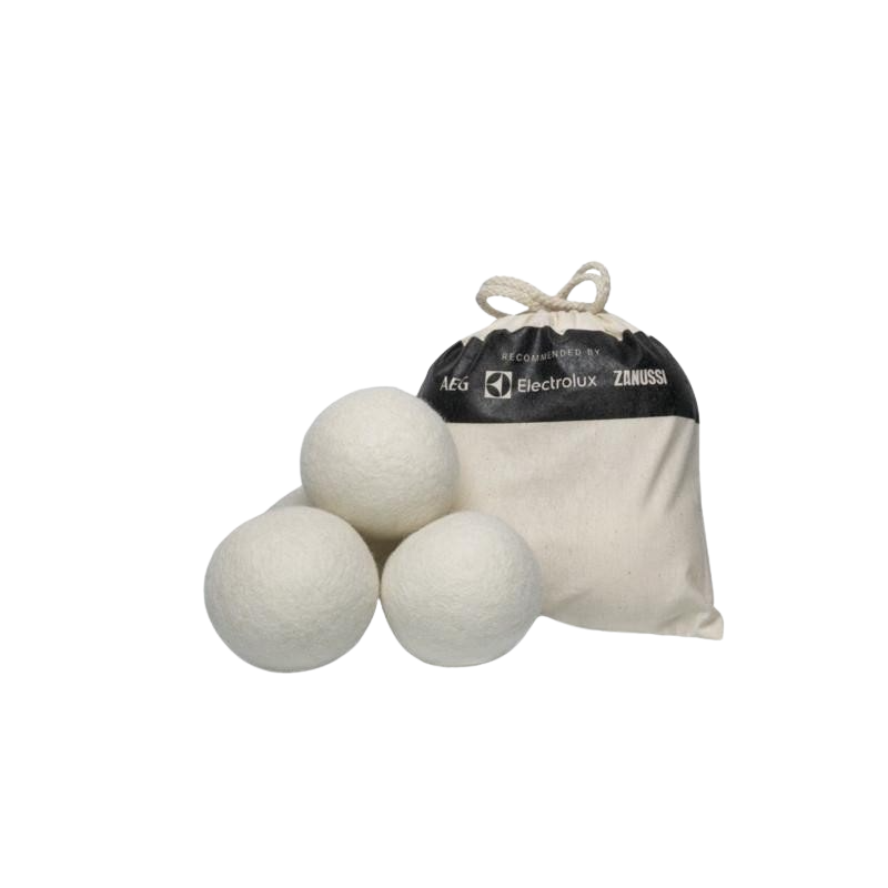 Þurrkboltar úr ull veita jafnari þurrkun og minnka krumpur úr þurrkara um allt að 30%. 4 stk í pakka með geymslupoka. Búið til úr náttúrulegri ull frá Nýja Sjálandi.