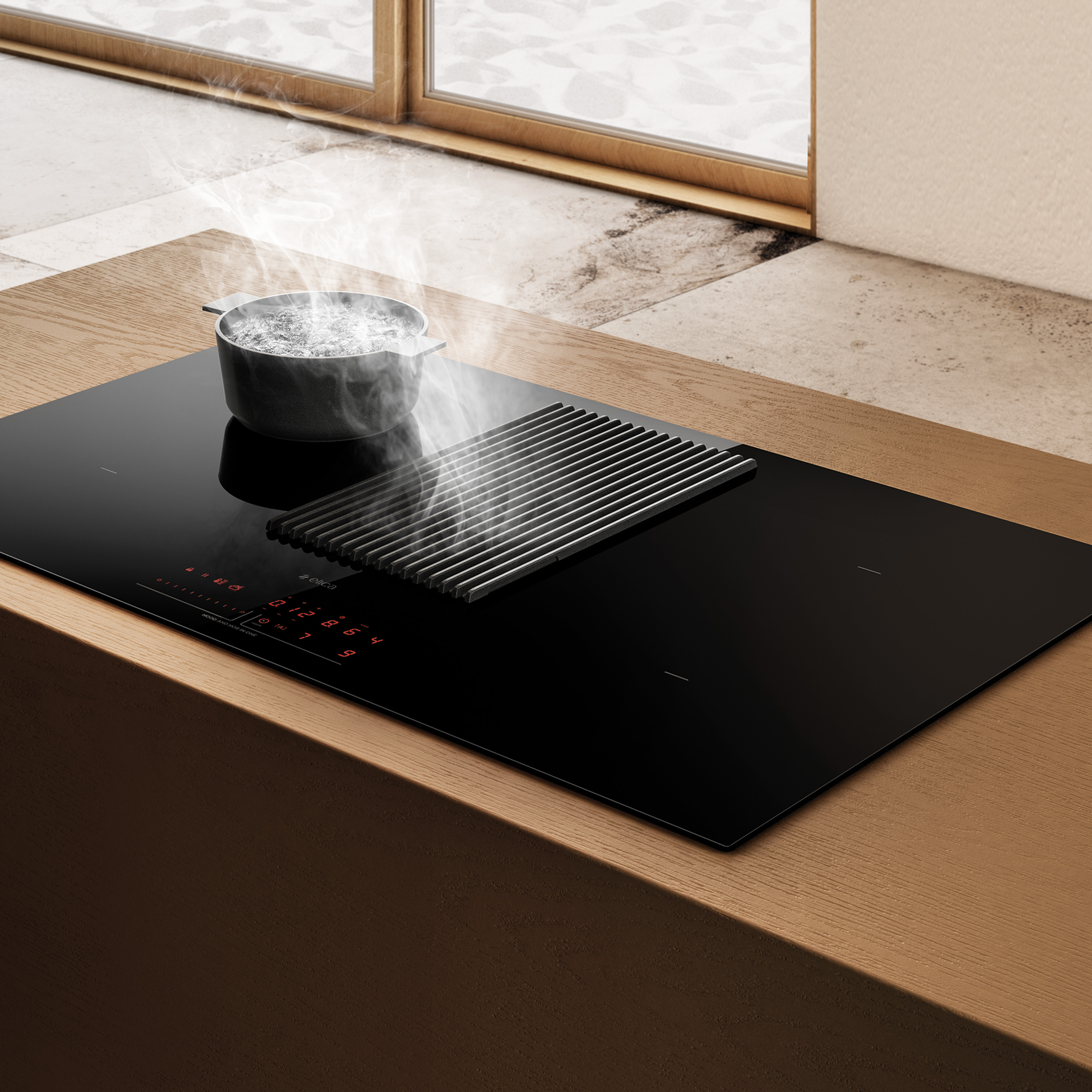 Nikola Tesla eru fyrstu spanhelluborðið frá Elica á Ítalíu, með innbyggðri eldhúsviftu.