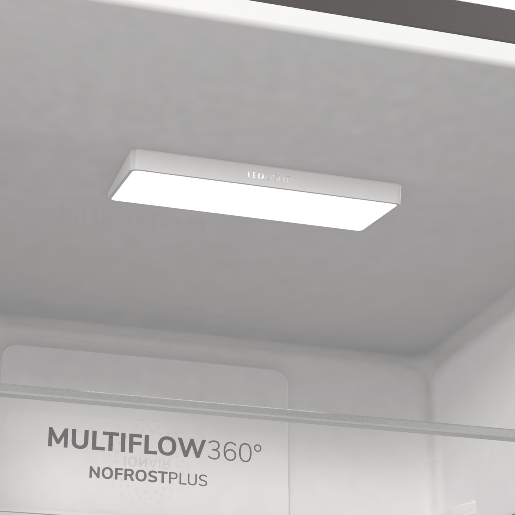 - MultiFlow 360° kælivifta tryggir jafnt kuldaflæði í öllum skápnum. Matvæli geymast lengur og við bestu mögulegu skilyrði.