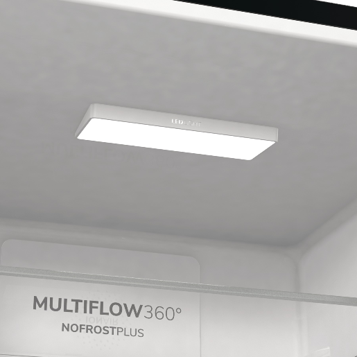 - MultiFlow 360° kælivifta tryggir jafnt kuldaflæði í öllum skápnum. Matvæli geymast lengur og við bestu mögulegu skilyrði.