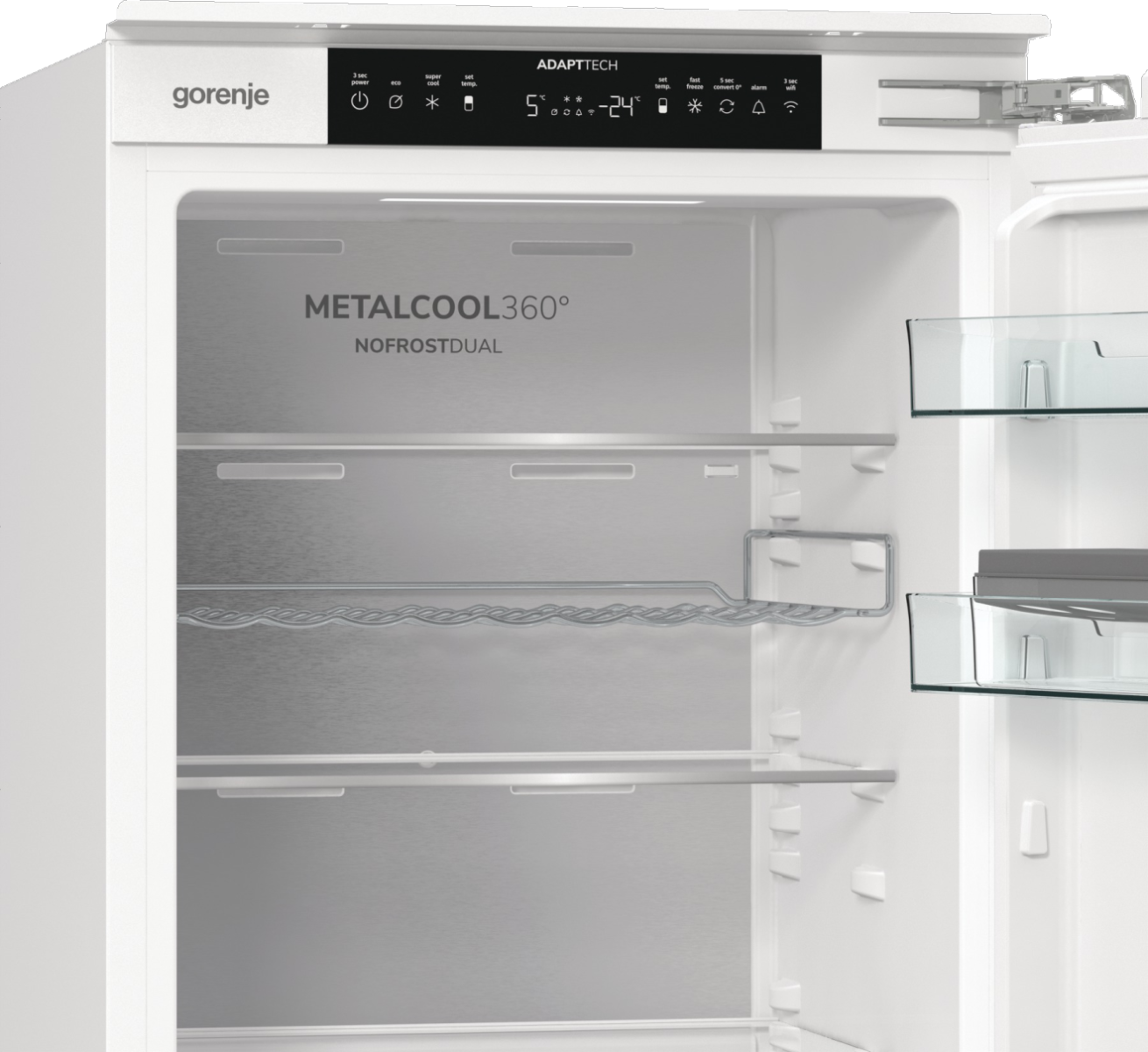 AdaptTech kerfið var þróað til þessað viðhalda stöðugu hitastigi í kæliskápnum óháð því hversu oft þú opnar hurðina. Kæliskápurinn fylgist stöðugt með notkun þinni og stýrir hitastiginu til að koma í veg fyrir hækkun á hitastigi, sem tryggir að maturinn haldist ferskur og lægri orkunotkun.