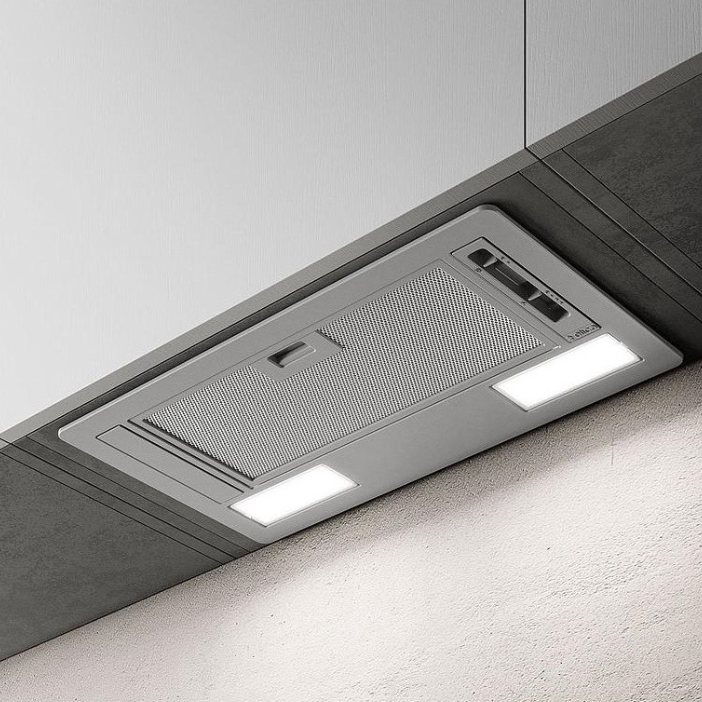 Innfelld grá vifta undir skáp sem lítið ber á.
