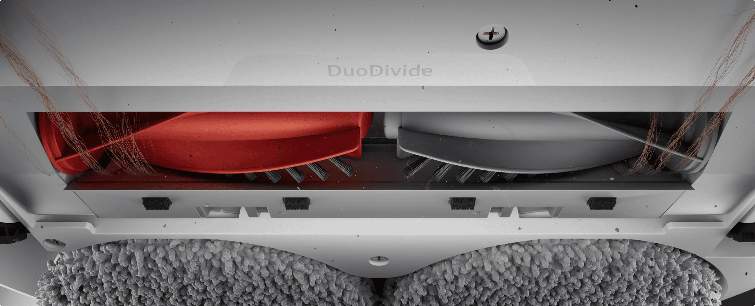 DuoDivide tvískiptur rúllubursti kemur í veg fyrir flækjur og minnkar viðhald með því að ýta hárum í átt að miðju.