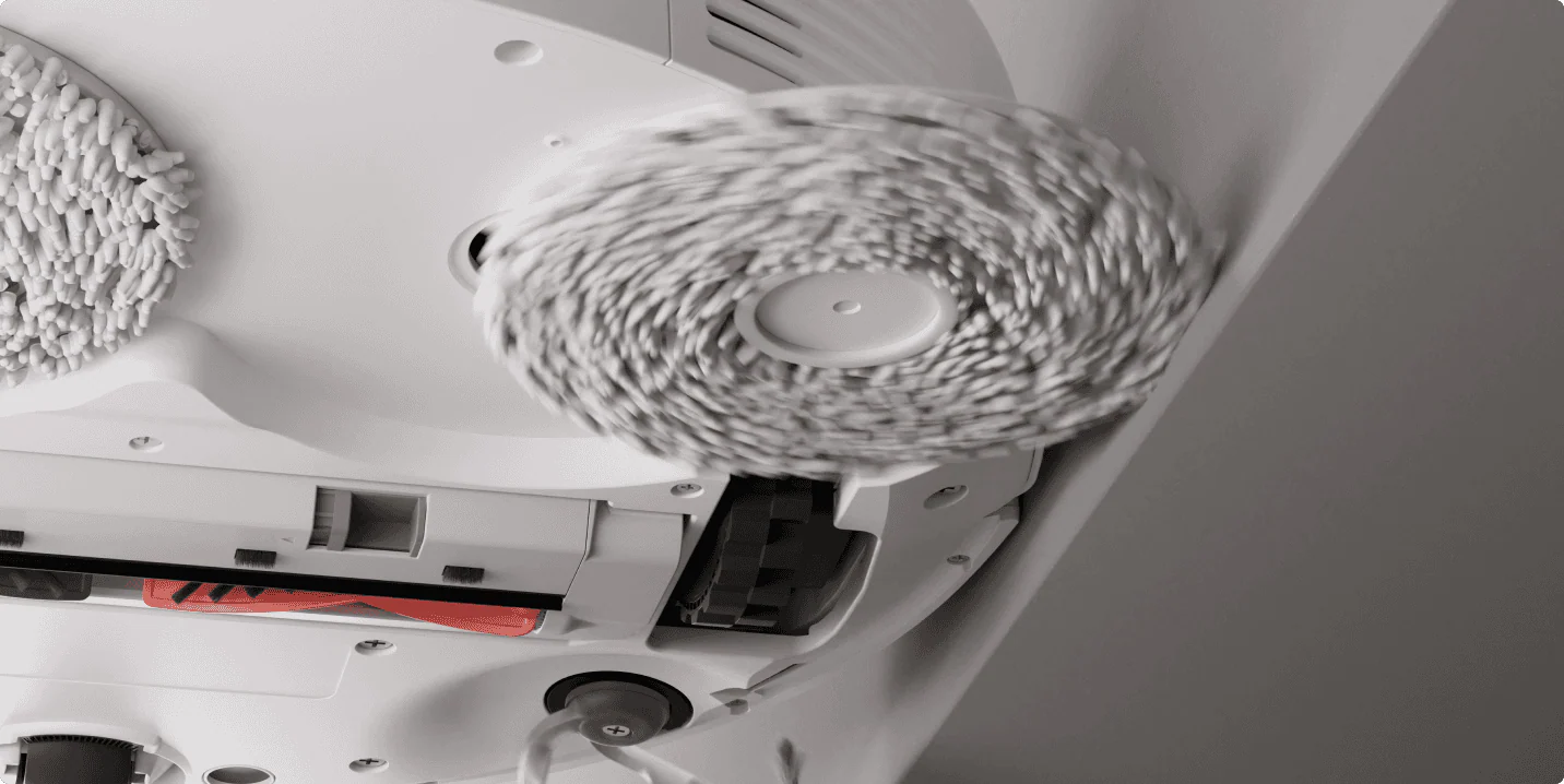 Moppaðu allt að 400m² í einni atlögu með allt að 200rpm í moppuhausunum. Þrýstingur og snúningur koma saman til að fjarlægja óhreinindi. Að auki getur vélmennið teygt út moppuna til að ná betur út í horn. Með allt að 10mm lyftu yfir teppi og 30 stillingar á vatnsflæði.