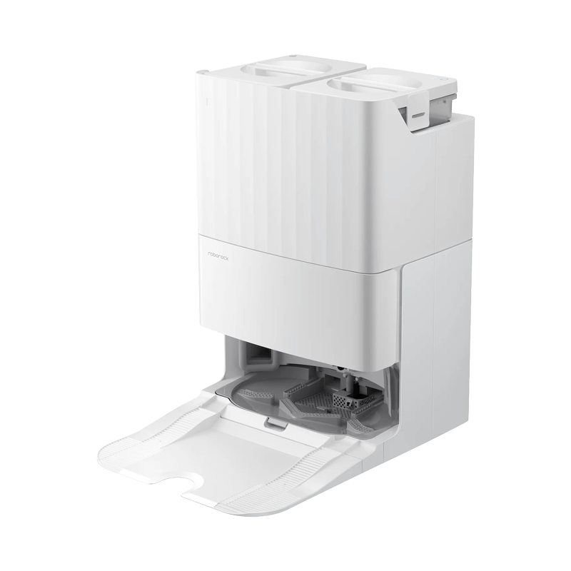 - Sjálfvirk stöð sem tæmir ryk, þrífur moppur og fyllir á hreint skúringarvatn