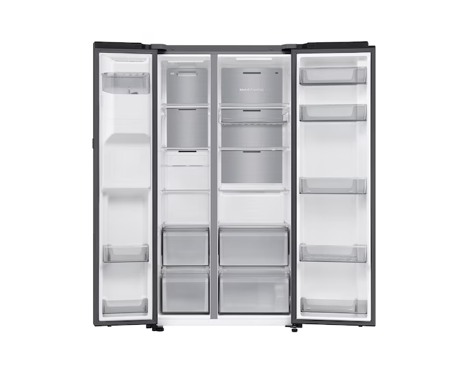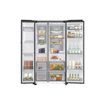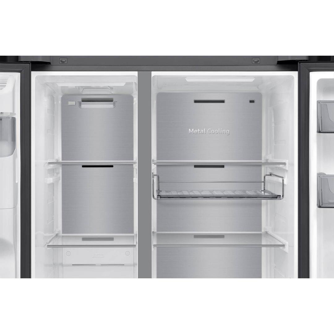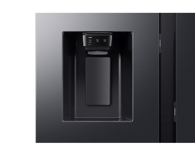 Sannkallaður konungur kæliskápanna. Hér er engu til sparað og sannkallað flaggskip Samsung. Skápurinn er alveg sléttur að framan og í svörtu Black Steel útliti sem gefur honum einstaklega fágað yfirbragð.