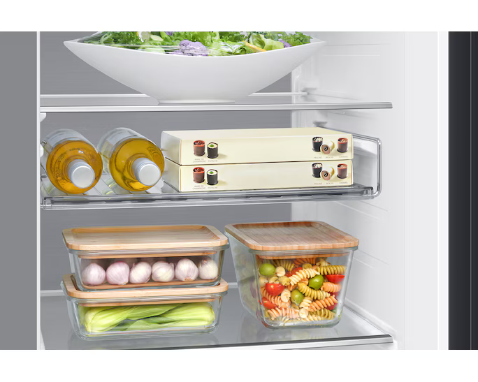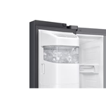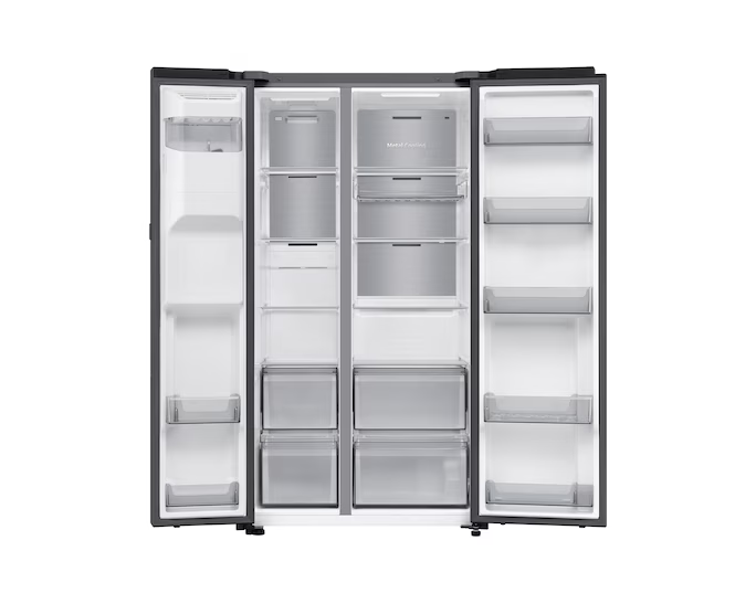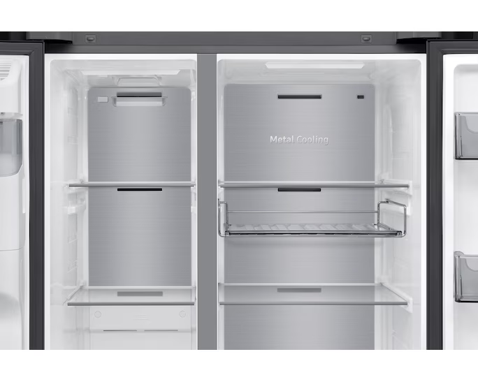Sannkallaður konungur kæliskápanna. Hér er engu til sparað og sannkallað flaggskip Samsung. Skápurinn er alveg sléttur að framan og í svörtu Black Steel útliti sem gefur honum einstaklega fágað yfirbragð.