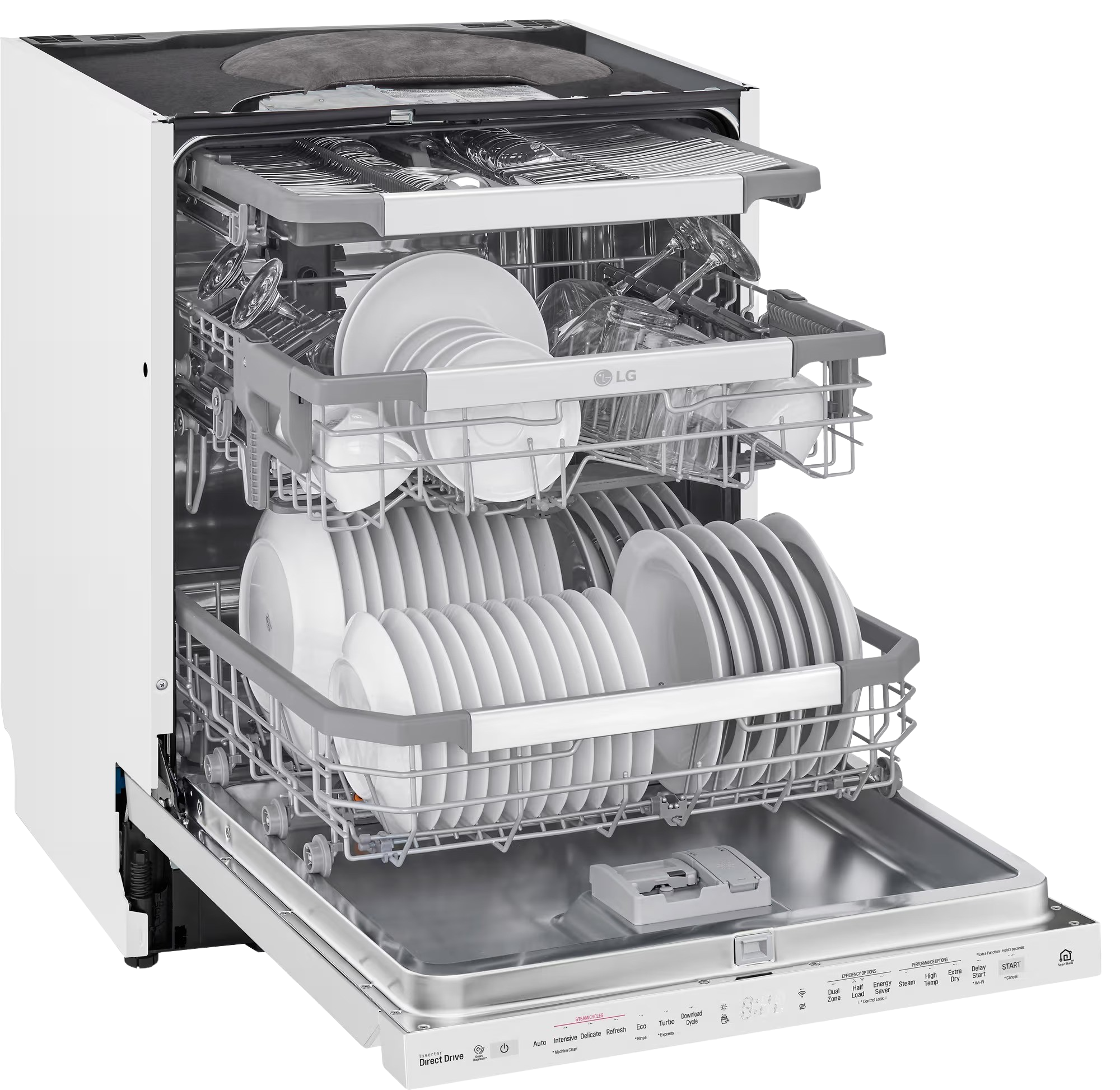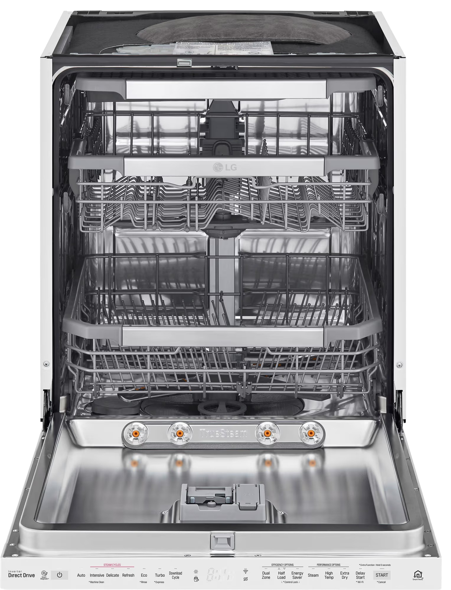 - 3 valaðgerðir: TrueSteam, TurboWash hraðþvottur og DualZone-tvískiptur þvottur fyrir viðkvæmt gler í efri körfu og þrjósk óhreinindi í neðri
