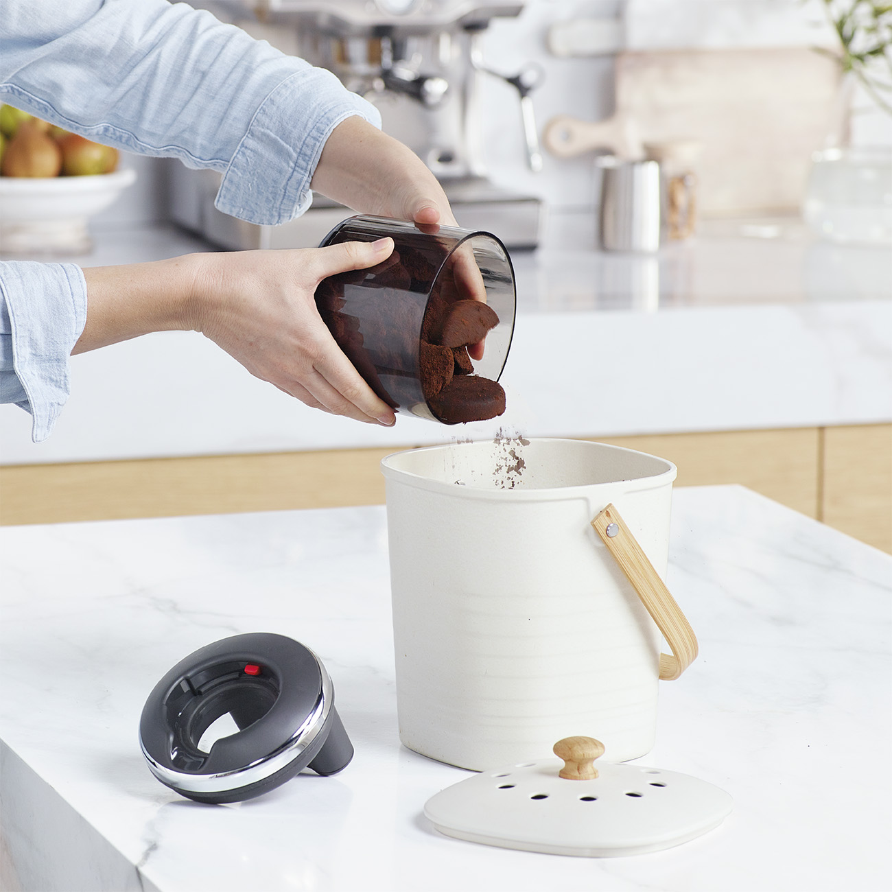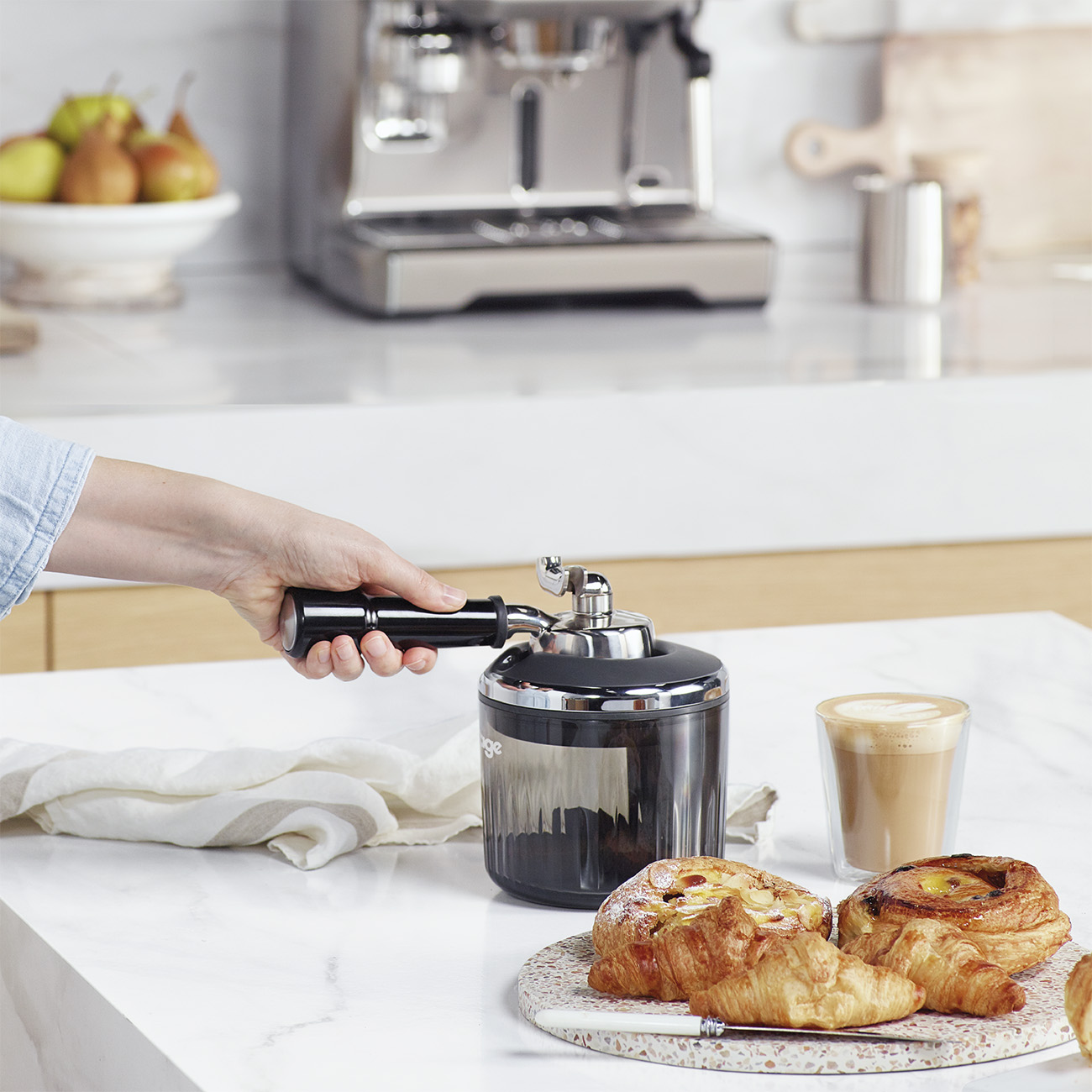 Sage 'The Puck Sucker' gerir kaffigerðina enn þæginlegri. Láttu boxið sjúa kaffikorginn úr filternum.