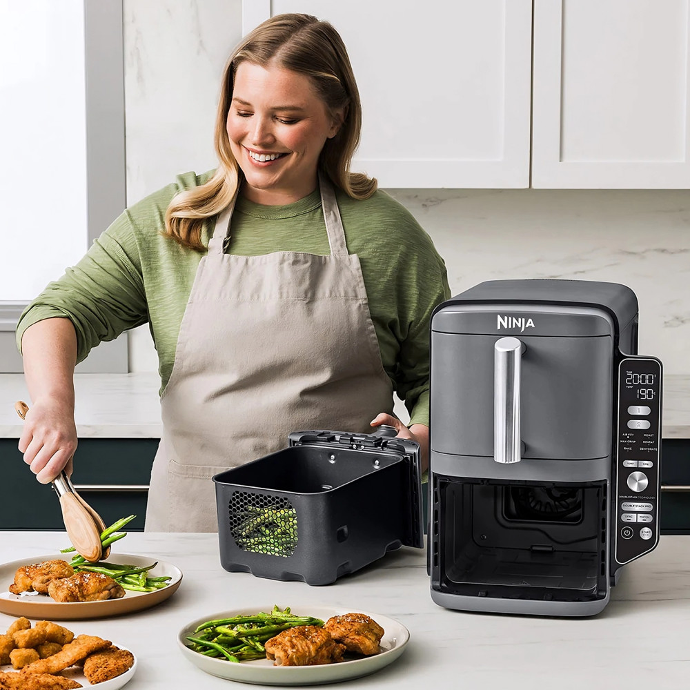 Ninja Double Stack XL Air Fryer er einstaklega öflugur loftsteikingarpottur með tveimur aðskildum hólfum sem eru samanlagt 9,5 lítrar.