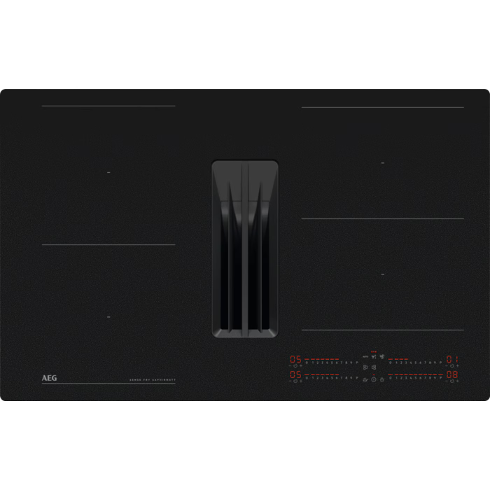 AEG SaphirMatt® ComoHob Spanhelluboð með viftu er einstaklega vandað helluborð með innbyggðri viftu. Borðið er með möttu gleri sem er rispufrítt og einstaklega auðveld í þrifum. Borðið er svo búið samtengjanlegum hellum sem gerir alla eldamennsku þæginlegri, hvort sem þú sért með litla, stóra, ílanga eða ferkantaða potta.