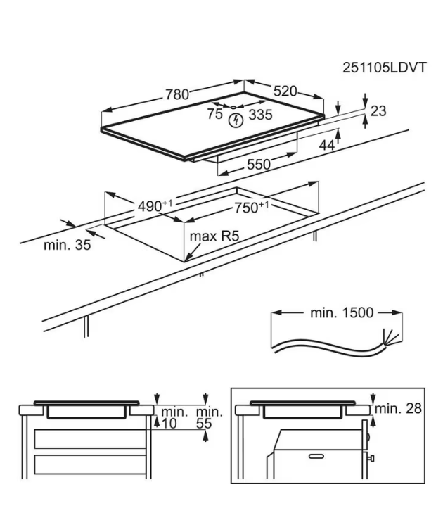 - Innbyggingarmál B x D 75 x 49 cm - sjá teikningu
