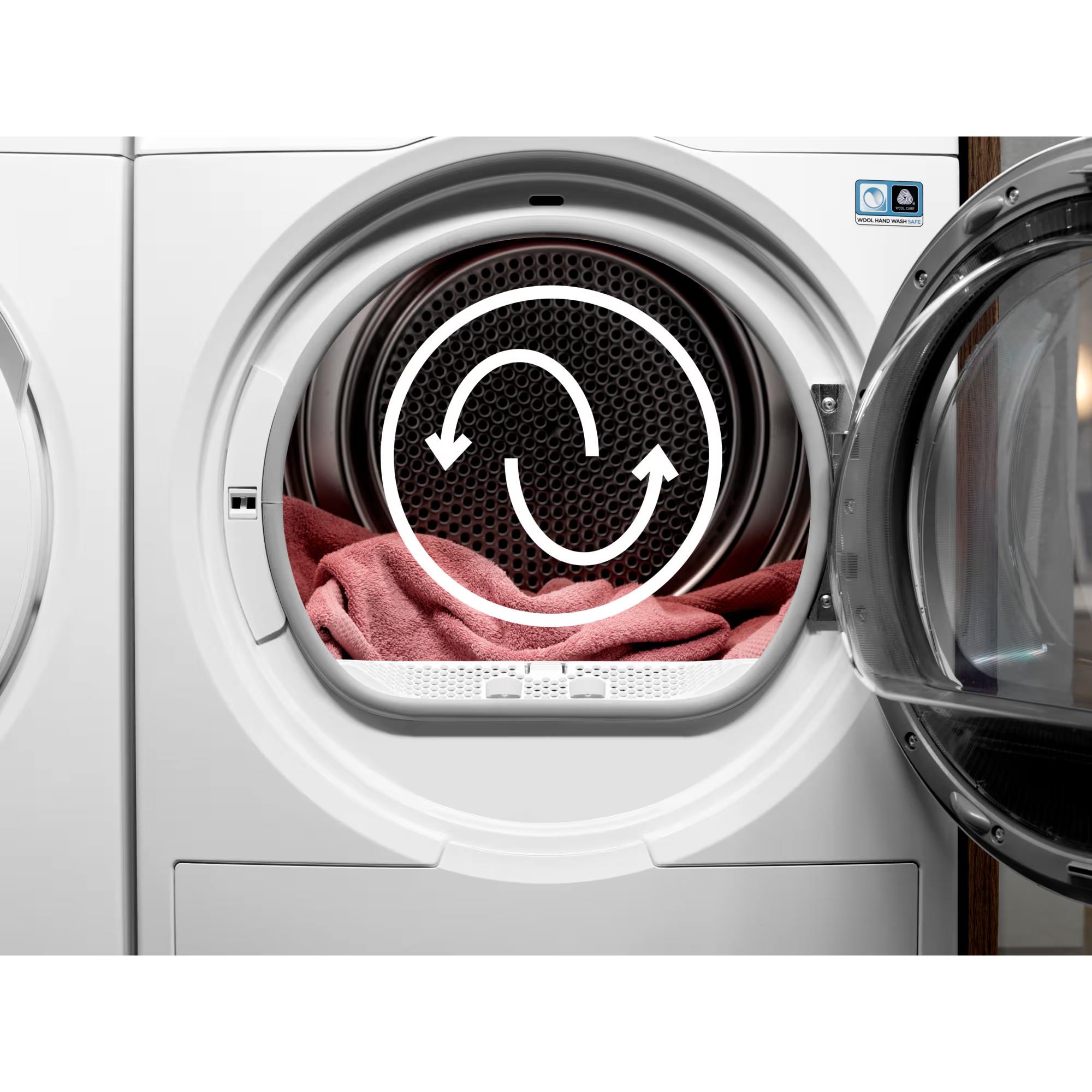 Tromla þurrkarans snýst í báðar áttir sem hjálpar til við að þurrka föt jafnt og draga úr krumpum, erfiðum brotum í fatnaði og þarf því minna að strauja.