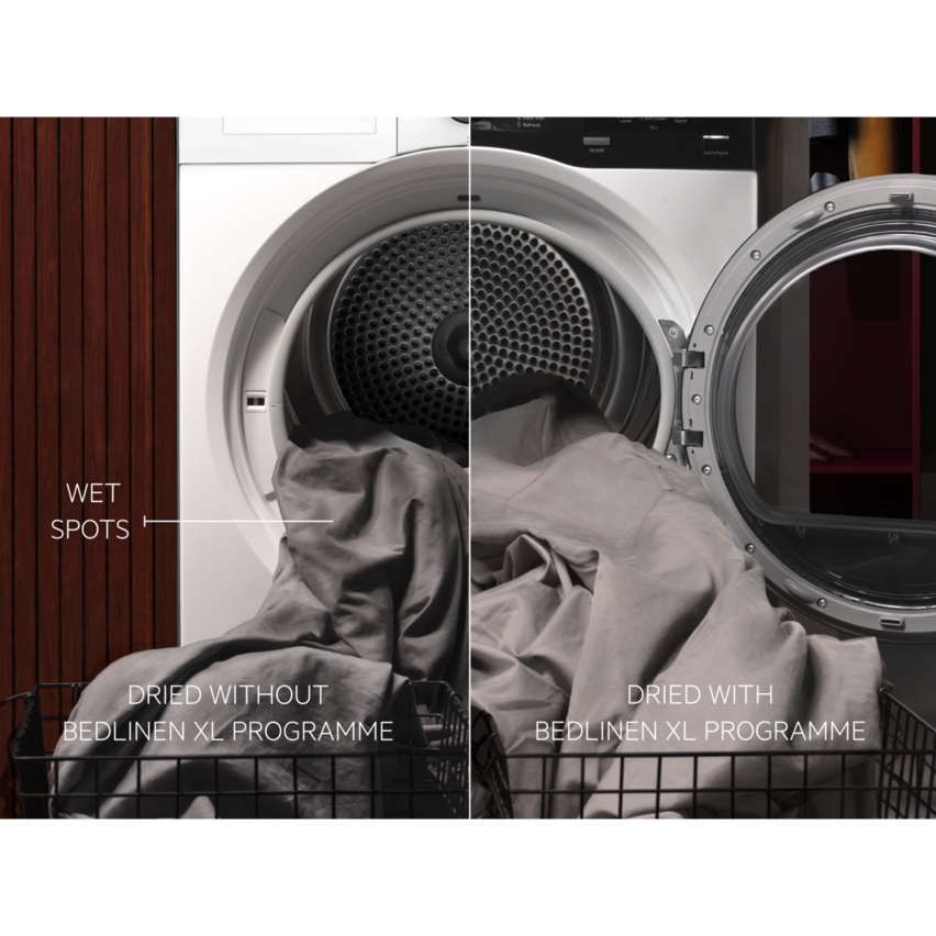 AEG 7000 SensiDry þurrkari með 8 kg tromlu. Þurrkar á nærgætinn hátt með sem minnstum slitmerkjum á fatnaði og taui.
