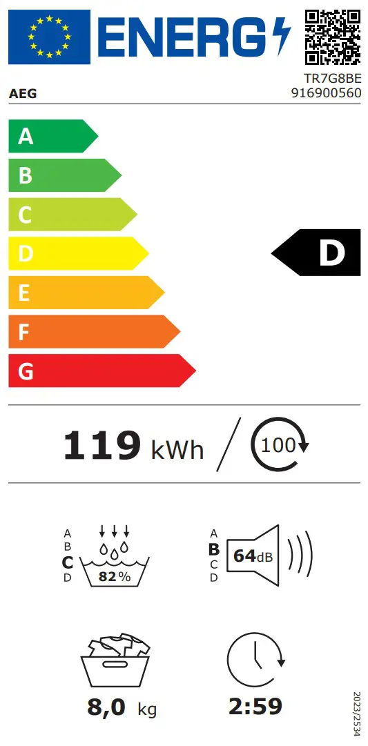 - Orkunýtni D (Orkunotkun 128 kWh á 100 skiptum)